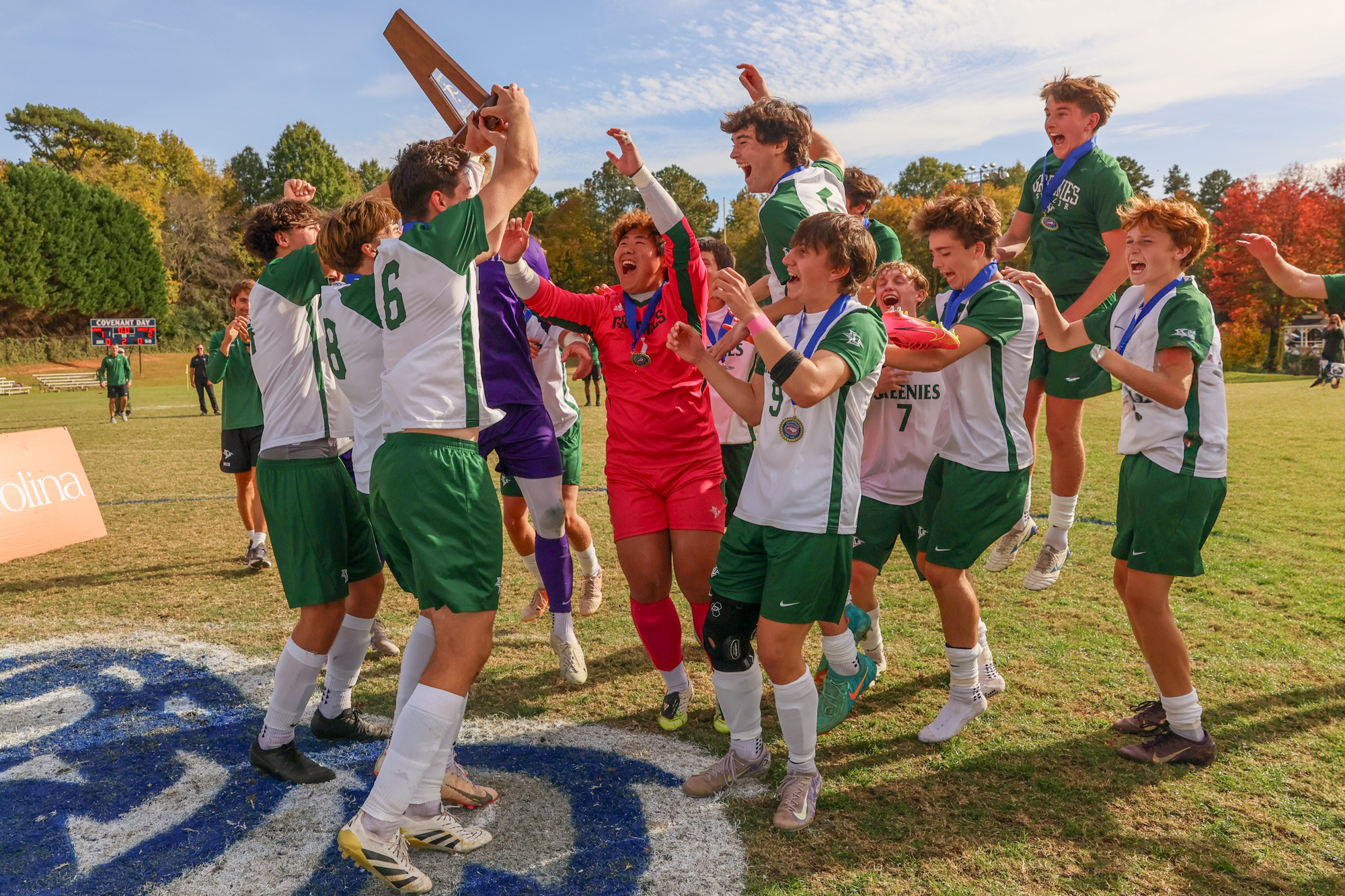 “It was great to be present to witness the raw emotion of our Greenies winning the soccer state championship and I loved capturing the emotions that accompanied it, from the long hug between Coach Campbell ‘00 and goalie Felix Huebner ‘26 to the pure joy of the boys accepting their hard-won trophy.”