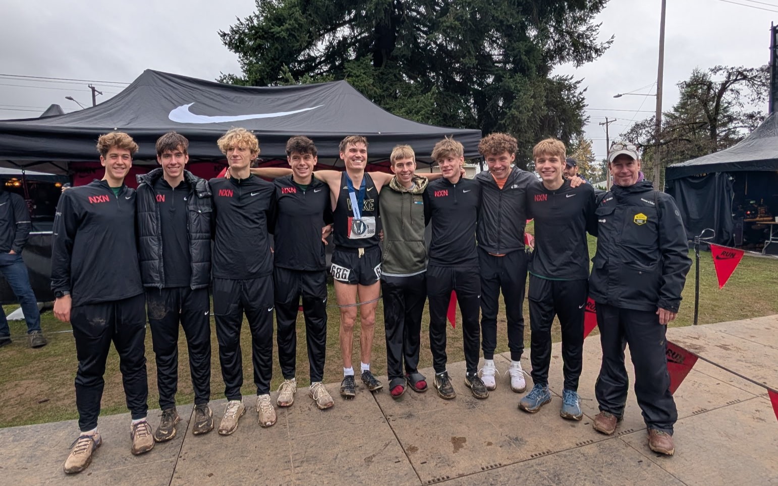 Saturday’s race was at the same site as the Nike Cross Nationals (NXN) meet – Glendoveer Golf Course – which allowed Christ School’s team to support Rocky.