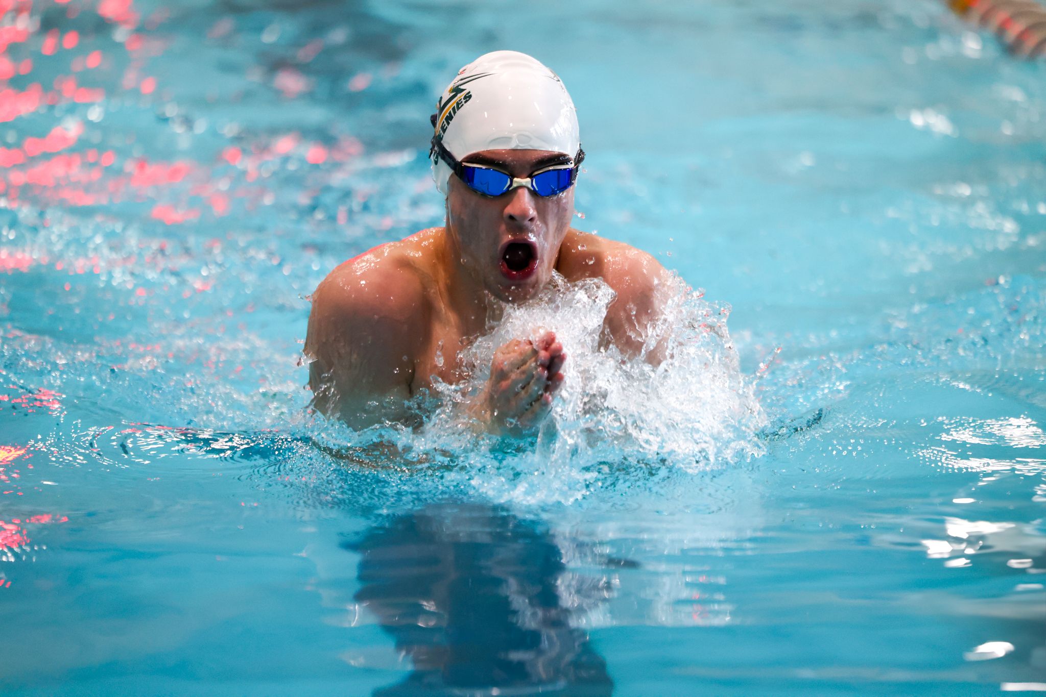 Nolan Johnson ’27 doubled up in 100-yard backstroke (1:00.76) and 200-yard individual medley (2:14.19), while Spencer Thompson ’26 won his second career CAA title in the 50-yard freestyle (23.23).
