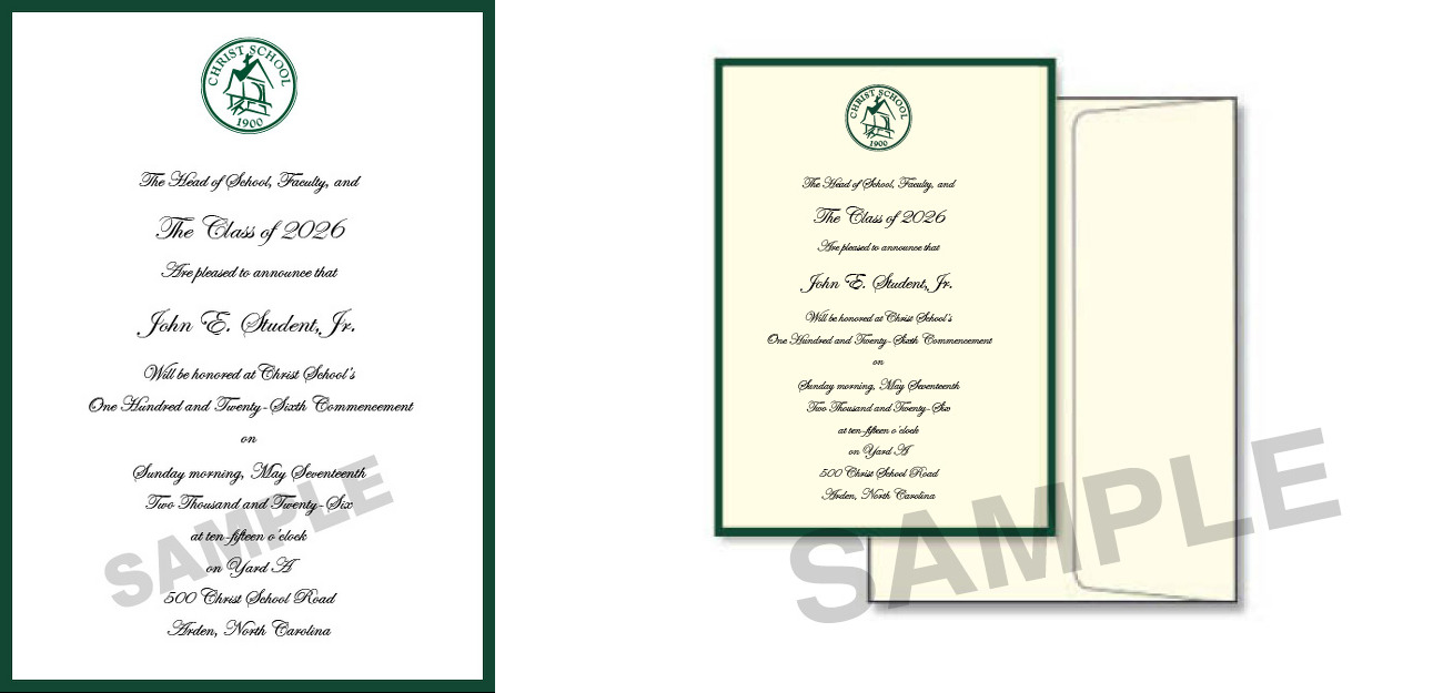 A professional photographer will be on hand to get a picture of your son as he receives his diploma. After the ceremony, the photographer will also be available to take group and family pictures. These photos will be available on the photographer’s website in the weeks following graduation. Christ School will email all parents the link to the website.